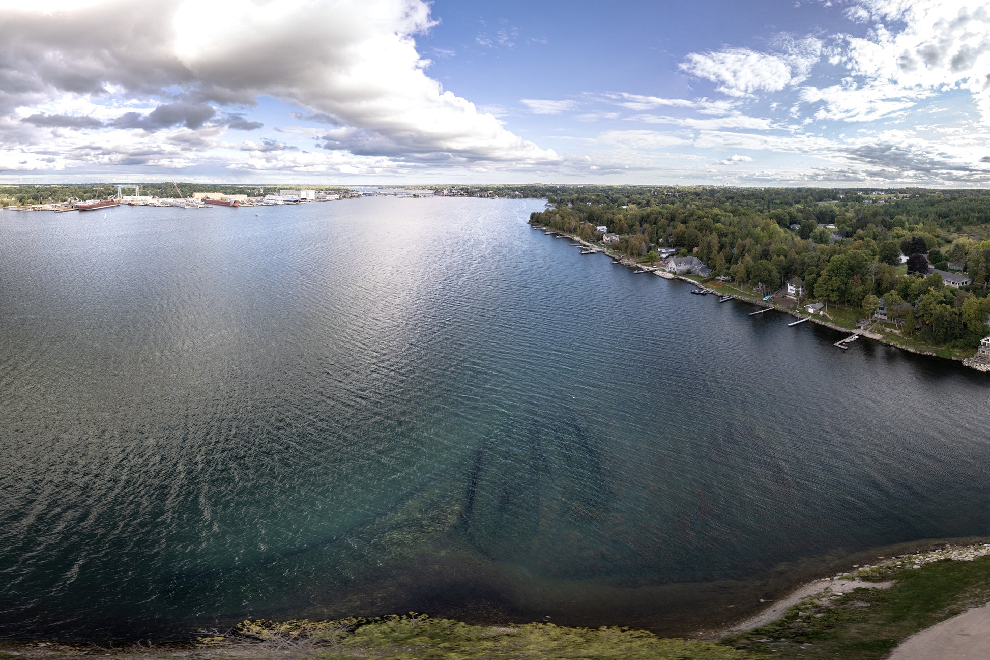 Through this photograph, we look down upon more than just sunken timbers—we see the echoes of an industry in transition, the remnants of ships that once carried cargo across the inland seas, and the legacy of a community built upon the rise and fall of the vessels that shaped it.