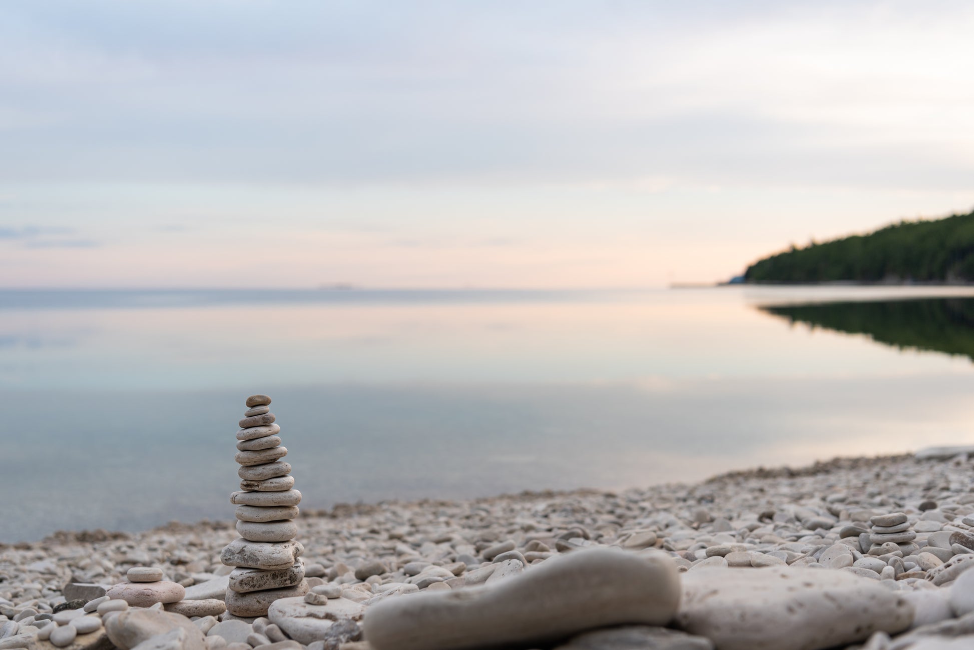 Pebble Beach in Sister Bay isn’t the kind of place for barefoot strolls—unless you’ve got feet of steel. Smooth white stones stretch along the shore, warmed by the morning sun, each one shaped by years of waves and weather. At sunrise, the whole place glows, the lake as calm as glass, reflecting soft pinks and golds before the day really wakes up.