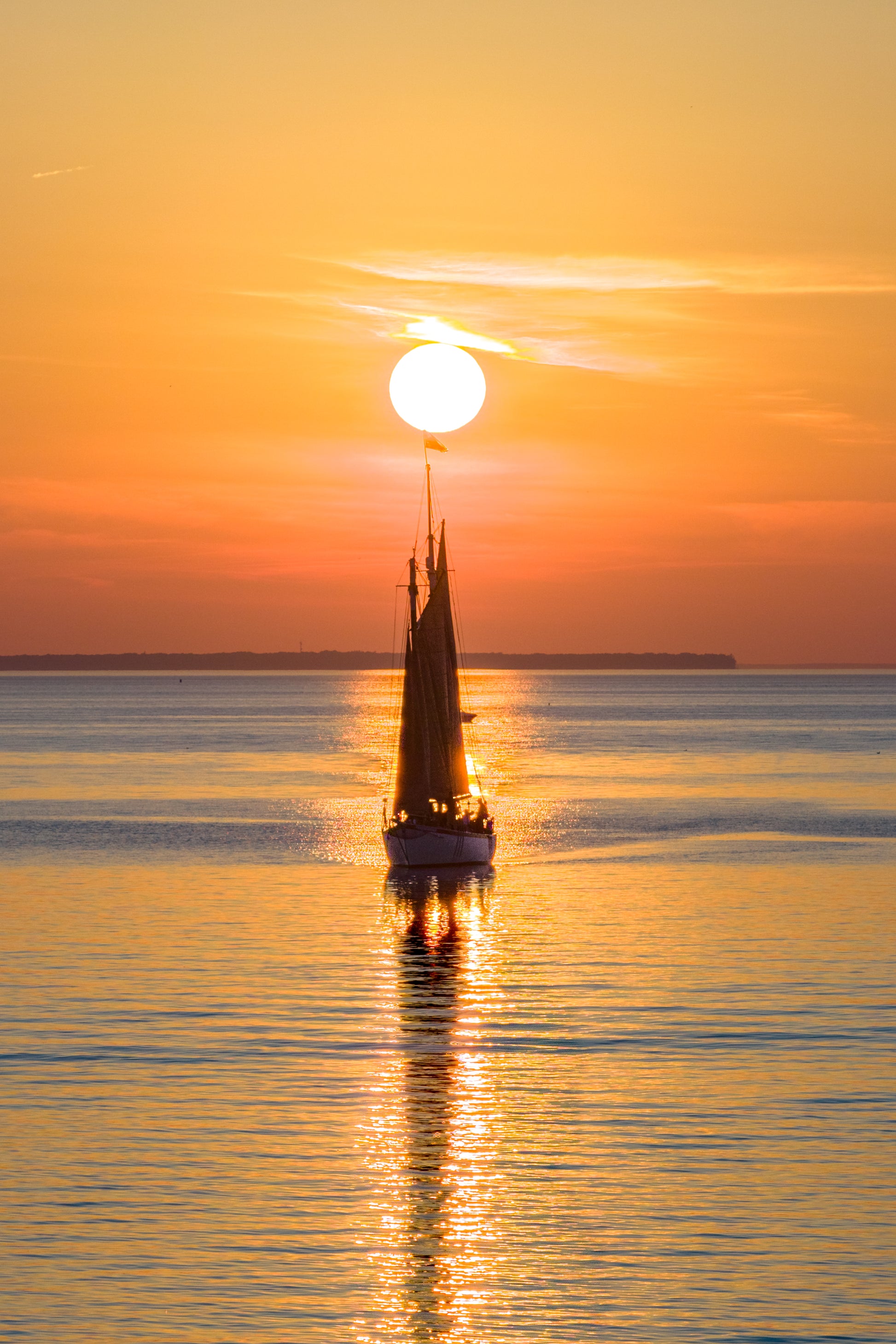 Sunset in Door County has a way of pausing time. It slows conversations, stills the water, and fills the air with that shared silence that happens when everyone is watching the same thing. As the sun lowers itself perfectly between the masts, the color deepens, and the old phrase feels true all over again—red sky at night, and all is well.